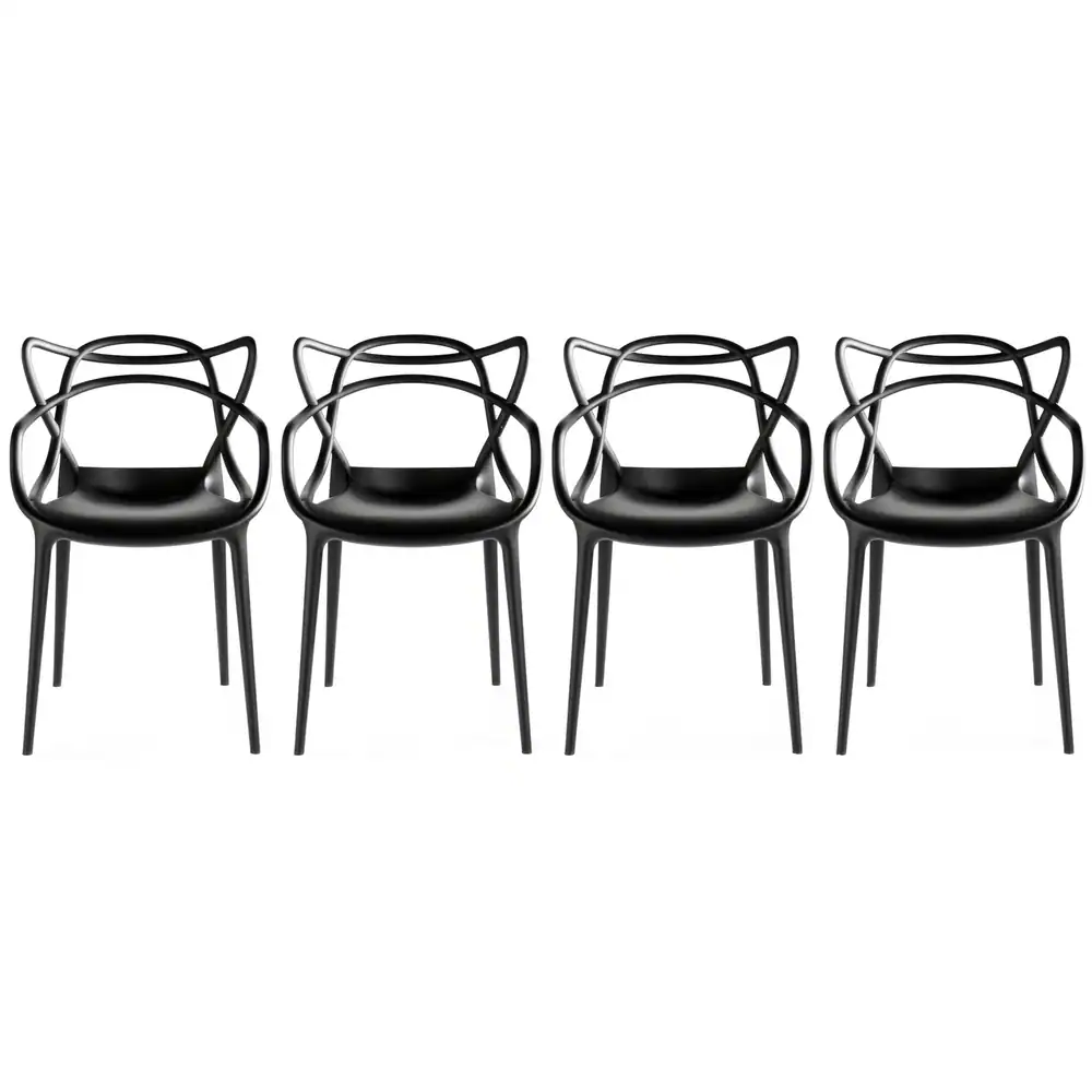 Elevate your dining experience with this set of four Modern Stacking Design Molded Dining Chairs. Available in various colors, these chairs are perfect for any room in the house, including dining rooms, family rooms, living rooms, and kitchens. Made with high-quality dyed polypropylene, these chairs are exact reproductions in size and weight. The stackable design makes them easy to store when not in use. Each chair measures 22.4 inches in width.