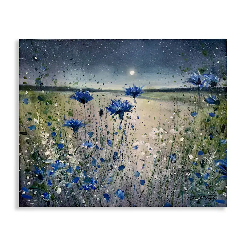 Stupell Blooming Blue Flowers Night Moon Canvas Wall Art by Jennifer Taylor Art