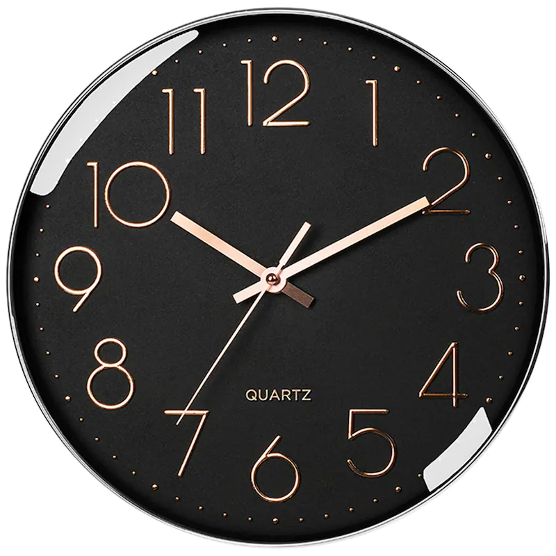 The 12″ plastic wall clock is a sleek and modern addition to any room or space. Made of good plastic with a glass finish, prevents dust from entering. Ideal for adding a touch of style and sophistication to any room or space, this wall clock is perfect for living rooms, bedrooms, or any other space where you want to make a statement. With its sleek and modern design, this clock is sure to become a focal point in your home decor.