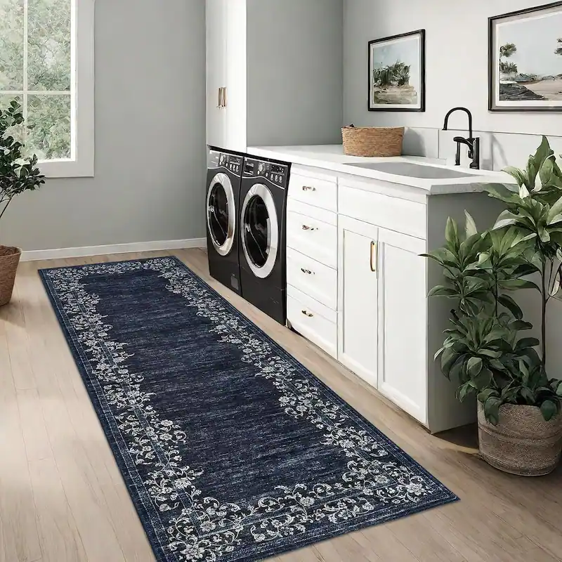 Product Description Enhance your home decor with our Modern Floral Print Bordered Area Rug, designed to bring a fresh and elegant touch to any room. This versatile rug features a stunning floral border pattern that complements a wide variety of interior styles, making it perfect for your living room, bedroom, dining room, kitchen, or hallway. Crafted with a low pile height, this area rug offers a soft touch underfoot while maintaining a sleek and modern look. Its stain-resistant surface ensures that spills and dirt are easily wiped away, making it an ideal choice for busy households and high-traffic areas. Experience the convenience of a machine washable rug that simplifies cleaning and maintenance. The rug’s durability is enhanced by its easy-to-clean fabric, allowing you to keep it looking fresh and vibrant with minimal effort. Safety is a priority with the included non-slip backing, providing extra stability and preventing slips or accidents on smooth floors. Additionally, the rug’s folding design allows for easy storage and transport, making it perfect for seasonal changes or moves. Key Features: – Modern floral print bordered design adds a stylish and decorative accent to any room – Machine washable for effortless cleaning and maintenance – Stain-resistant material helps protect against spills and dirt – Soft touch with low pile height for comfort and ease of cleaning – Non-slip backing ensures safety on various floor surfaces – Versatile use in living rooms, bedrooms, dining areas, kitchens, and hallways – Folding design allows for convenient storage and portability Upgrade your home’s ambiance with this beautiful, functional, and easy-care floral area rug that combines style, comfort, and practicality in one elegant package.